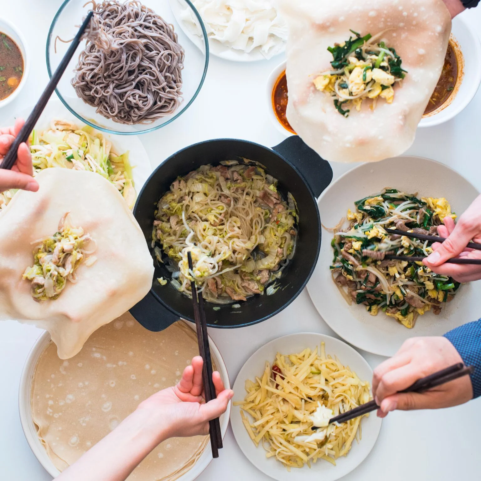 Ying Wang, an early Junzi Kitchen supporter and mother of our CEO, remembers watching her grandfather and mother cook for the family: "I’ll always remember the scene: him standing over the giant wok frying chun-bing wrappers while my mom worked the bellows and fed firewood into the stove. We kids stood around and watched, our mouths watering from the smell. It was a tough time, and we were very poor, so the ingredients were simple: shredded cabbage, bamboo shoots, a little bit of meat, sometimes homemade sweet-potato noodles that we made ourselves. But Grandpa’s chun-bing were unforgettable."
