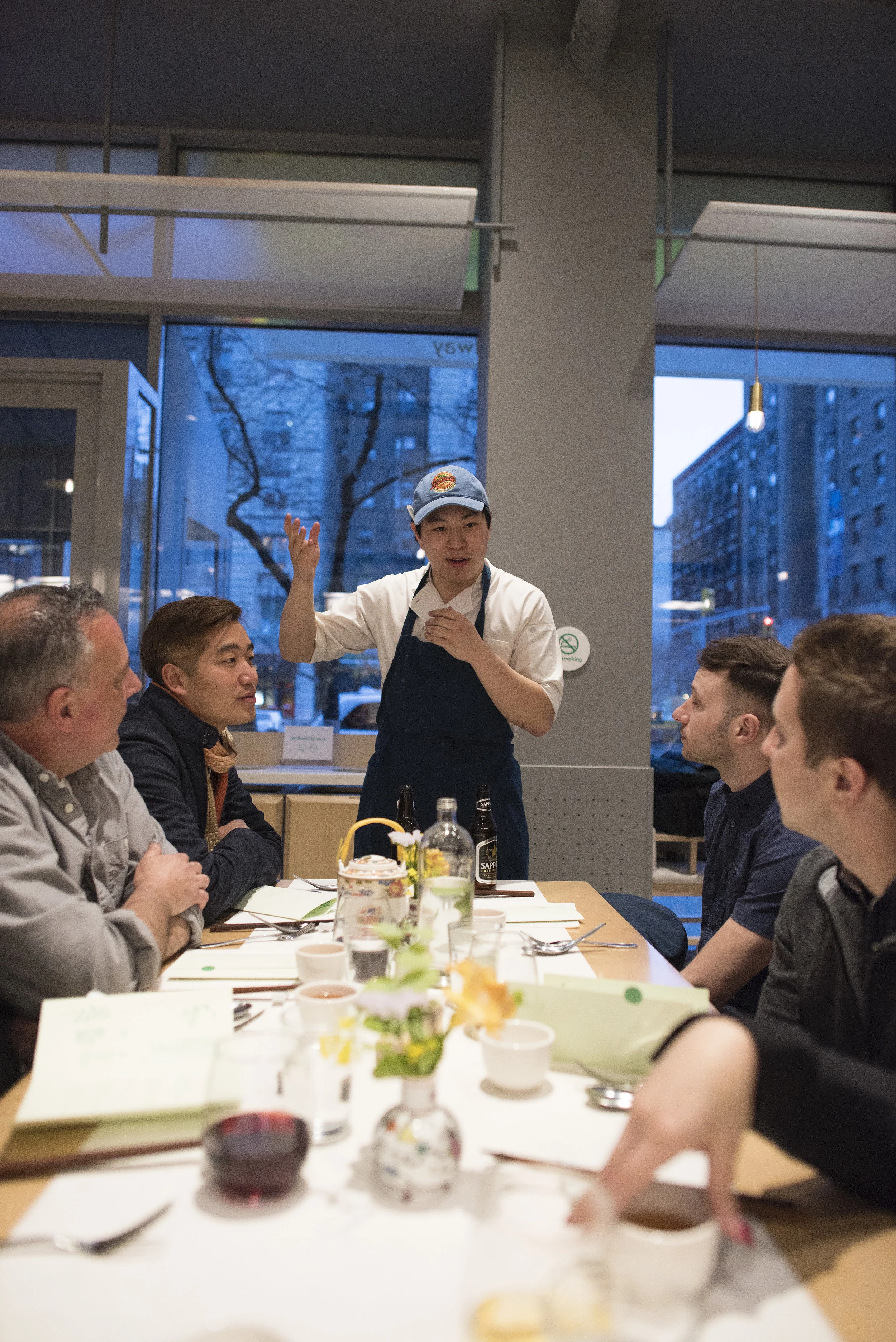 Chef Lucas describing Hu Sihui's "A Soup for the Qan" the book that inspired April's Chef's Table recipes and ingredients.